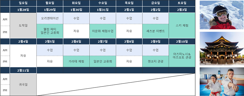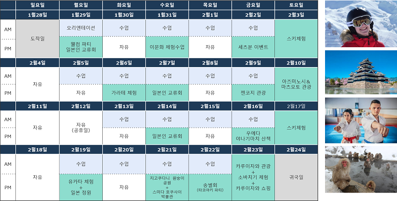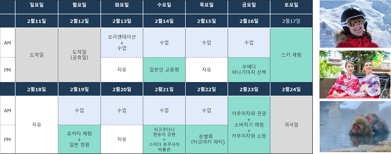 일본의 겨울을 만끽할 수 있는 나가노에서 개최! 다양한 액티비티에 참여하면서 일본어 공부를 즐겨보세요.
