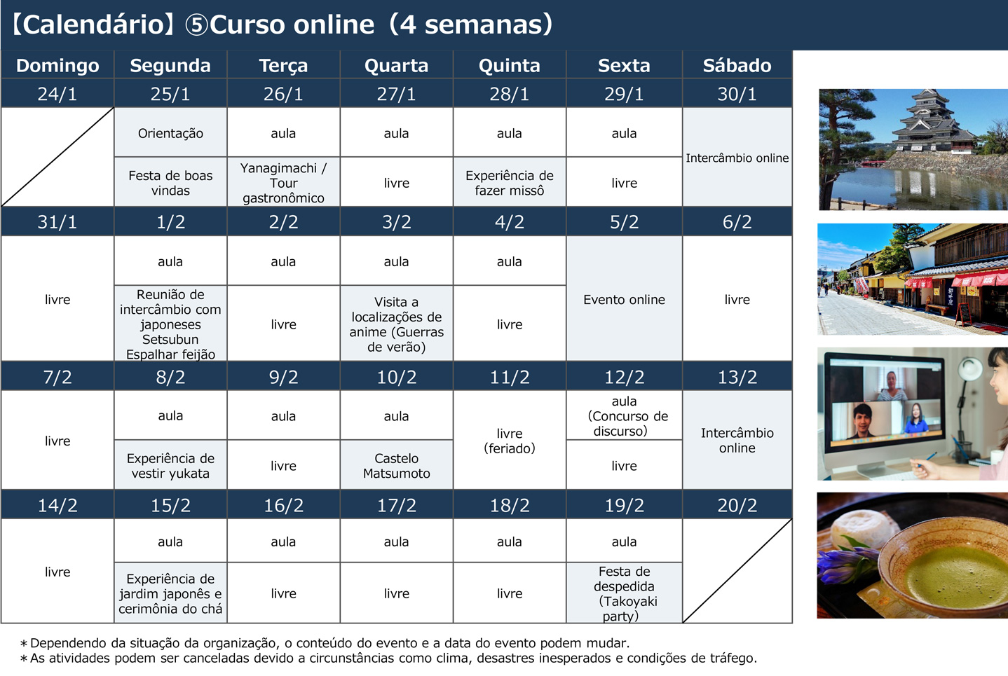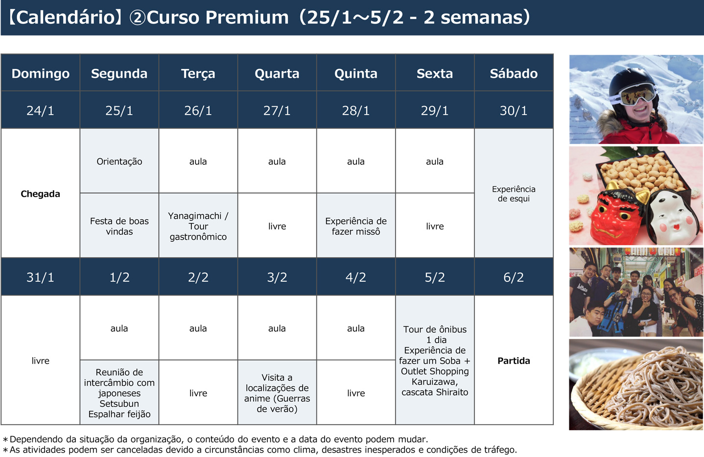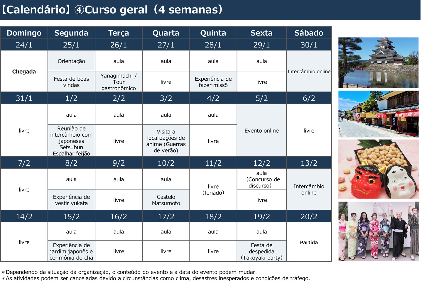 Geral | 25/1 | 19/2 | 4 semanas | 280,000 JPY | 260,000 JPY |
