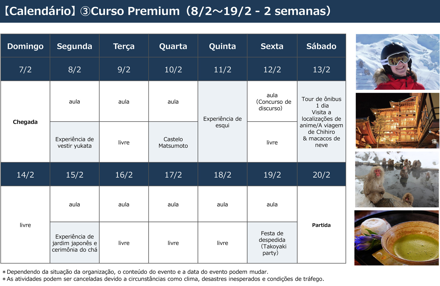 Premium | 25/1 | 19/2 | 4 semanas | 350,000 JPY | 330,000 JPY |
